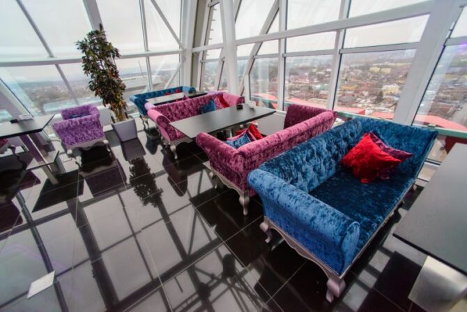 - Extra Lounge расположен на 15 этаже и украшен живыми растениями. Оцените красоту подмосковных окрестностей с высоты птичьего полета. Эмоции вам гарантированы после кухни в стиле fusion.