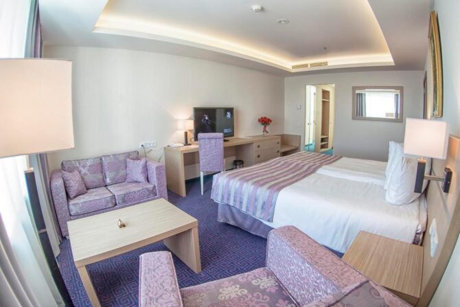 В каждом номере вы найдете систему индивидуального климат-контроля, сейф для хранения ноутбука и ценных вещей, спутниковое ТВ с каналами разных стран, бесплатную международную телефонию, высокоскоростной беспроводной интернет, мини-бар.