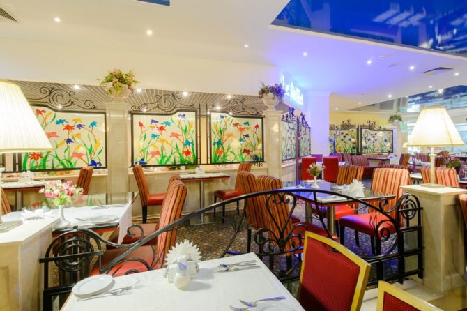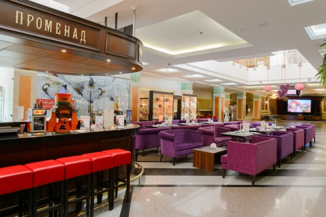 - Promenade – изысканный бар с разнообразной алкогольной картой. В меню можно найти коктейли месяца, а также попробовать редкие сорта чая или кофе.