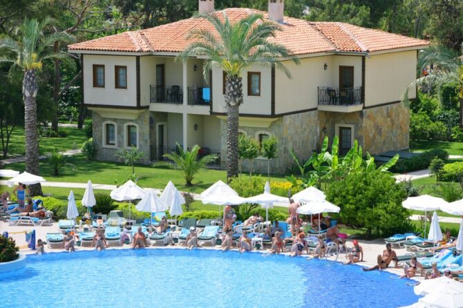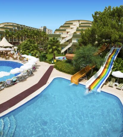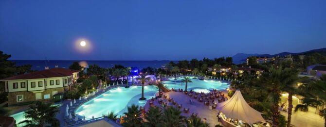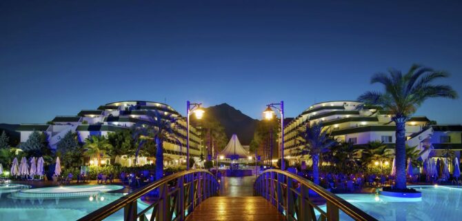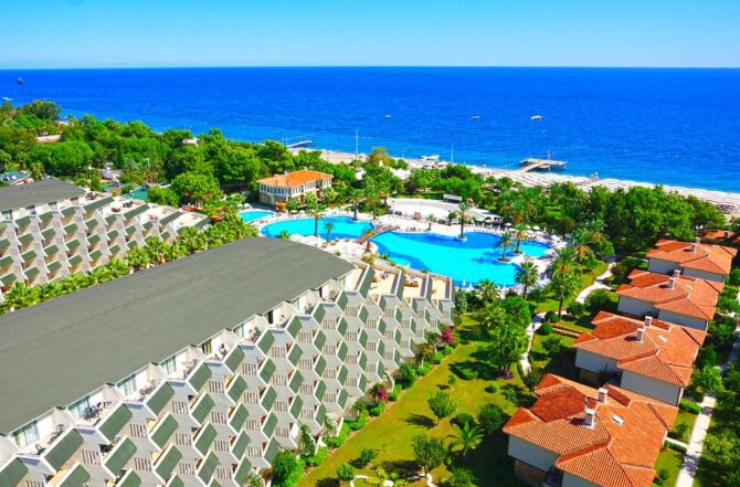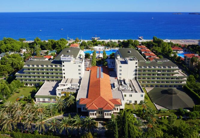 Спа-курорт Queen»s Park Tekirova 5* раскинулся на первой линии у моря. Построен в 2004, последний раз его реставрировали в 2013 году, это позволило сделать комплекс более современным, удобным и уютным. Его общая площадь составляет 60 000 кв. м., он состоит из основного корпуса и 10 комфортных бунгало. Гостям предоставляется возможность плавать в открытом и закрытом бассейнах, пользоваться услугами спа-центра, посещать сауну, заниматься в фитнес-центре, весело отдыхать в баре. Сюда можно приезжать на автомобиле, на территории предусмотрена частная парковка, пользование которой для отдыхающих бесплатное.