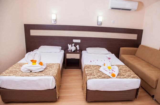 - 475 стандартных номеров. Метраж – 28 квадратных метров. В них могут жить максимум три человека. По желанию клиентов сотрудники могут внести дополнительную кровать для ребенка.
