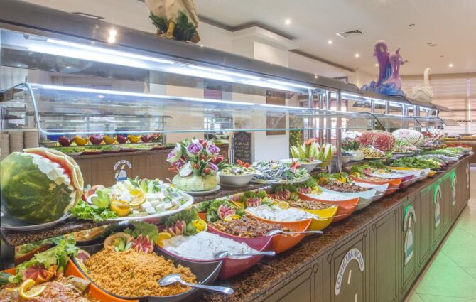 Ресторан Ala Carte работает каждый вечер с 19:00 до 21:00. Здесь преобладают блюда из морепродуктов, обширное рыбное меню. Раз в неделю есть возможность полакомиться бесплатными кулинарными изысками. В гостинице есть много баров – три у бассейна, три лобби-бара и один диско-бар. Как говорилось ранее, алкоголь турецкого производства здесь предоставляется совершенно бесплатно.
