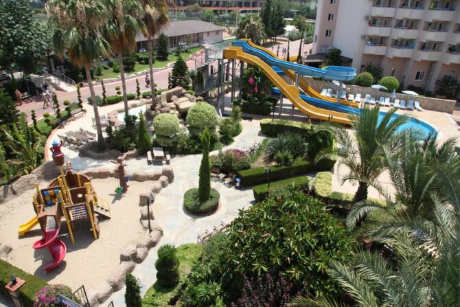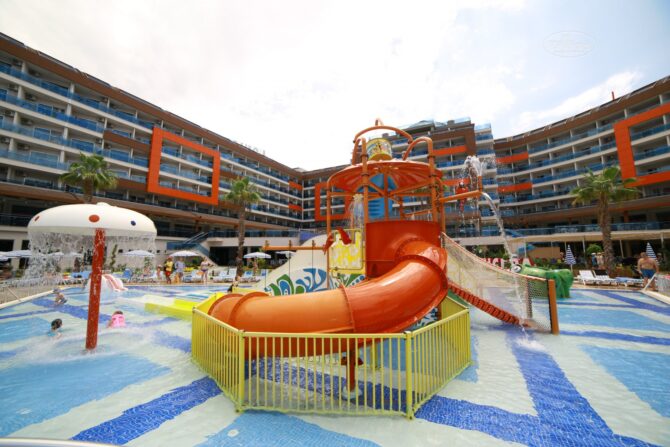 Как говорилось ранее, подавляющее большинство гостей составляют семейные пары с детьми. Для них все устроено с максимальным удобством и комфортом. На территории построено пять бассейнов, один из которых крытый. Малыши могут в сопровождении родителей и без них кататься на горках и купаться в теплой воде. За малышами следят опытные спасатели и инструкторы по плаванию.