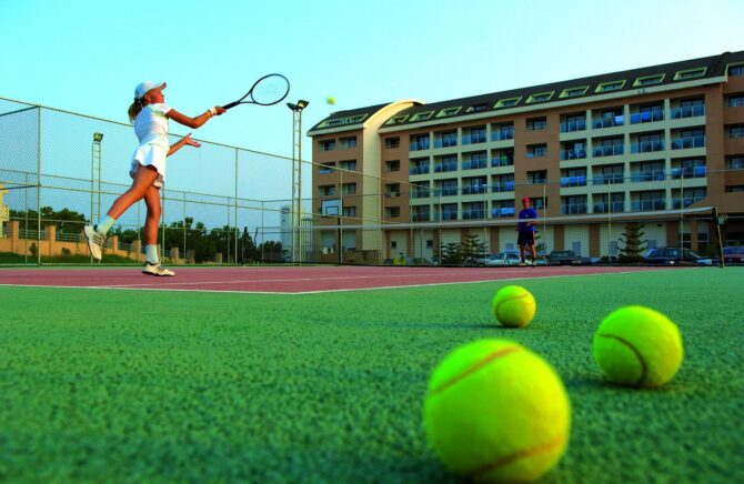 Кроме этого постояльцы могут воспользоваться теннисным кортом, волейбольной и баскетбольной площадкой, тренажерным залом, джакузи и сауной.