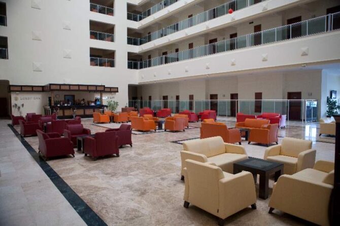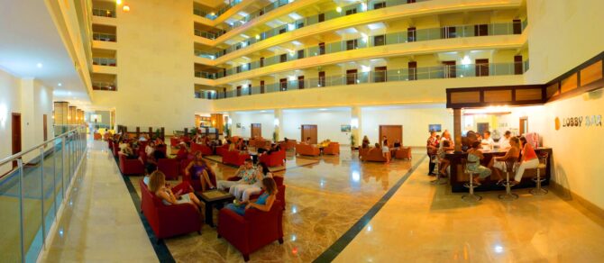 Персонал отеля вежливый и доброжелательный. На ресепшене готовы выполнить любую просьбу гостя в короткий промежуток времени. Благодаря круглосуточной стойке регистрации, посетителей встречают даже ночью. Если свободных номеров нет, придется ожидать времени заселения. В это время можно оставить багаж в камере хранения и отправиться на изучение территории. Кроме этого вы уже можете, как полноценный житель, позавтракать, пообедать или поужинать, отправиться отдыхать на пляж или остаться возле бассейна.