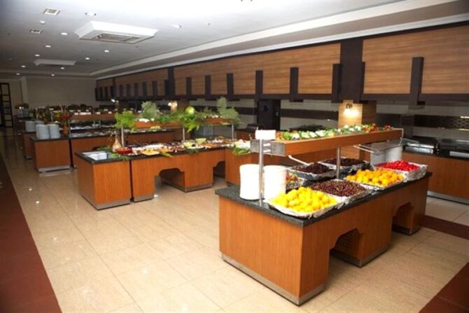 Главный ресторан работает по системе «шведский стол» Здесь можно попробовать блюда интернациональной кухни. Есть детское и диетическое меню, поэтому каждый человек найдет себе продукты по вкусу. Кстати, они достаточно разнообразные:
