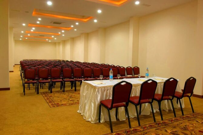 Если вам негде провести конференцию, семинар или деловую встречу, закажите услуги конференц-зала. Он вмещает 300 человек и оборудован всей необходимой техникой. Заранее предупредите персонал о предстоящем мероприятии.