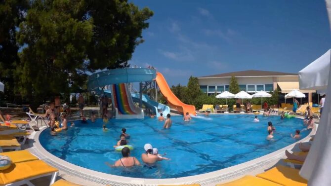 В отеле Laphetos Beach Resort & Spa 5 есть множество развлечений, которые придутся вам по вкусу. Почти всю внутреннюю территорию занимает большой бассейн для взрослых, который чистят регулярно и где поддерживается оптимальная температура. Вокруг расположены лежаки с зонтами и удобными матрацами. Интересно провести время можно на водных горках разного размера.
