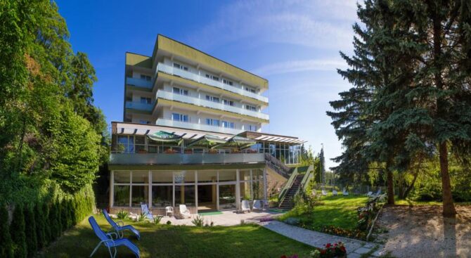 Четырехзвездочный отель Danubius Health Spa Resort Hvz возвышается на холме, окруженный лесополосой. Из номеров открывается панорамный вид на Хевиз и термальное озеро, которое находится на расстоянии 600 м.