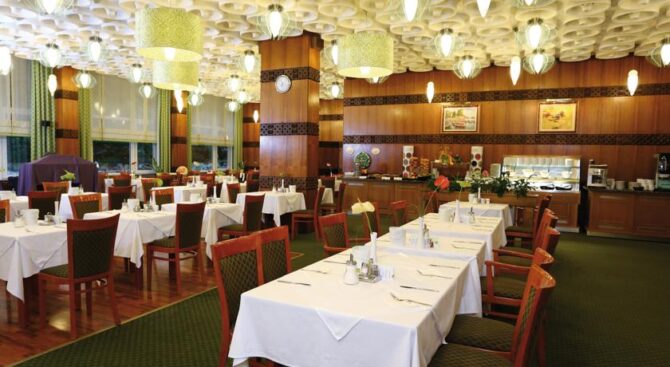 В ресторане отеля можно насладиться разнообразными блюдами национальной венгерской кухни. В случае необходимости диетолог составит индивидуальное меню и даст необходимые рекомендации.