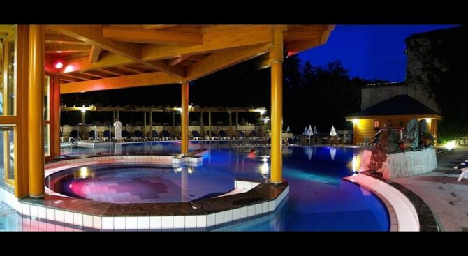 В зоне отдыха имеется несколько бассейнов, два из которых наполнены лечебной водой, есть детский лягушатник с горками. В распоряжении отдыхающих термальные бани, стилизованные под эпоху Древнего Рима, а также минеральная вода из собственного источника.