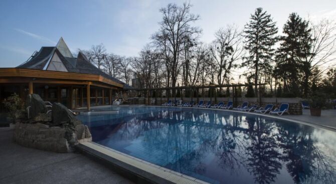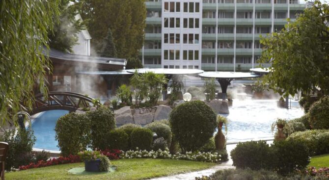 Сервис единственного пятизвездочного отеля Lotus Therme Hotel & Spa по праву считается лучшим в Хевизе. Комплекс расположен в собственной парковой зоне, занимающей площадь в 17 га. На территории, в 15-20 минутах ходьбы от гостиницы, есть термальное озеро. Лечебной водой можно насладиться в открытом и закрытом бассейнах, термальных ваннах и джакузи.