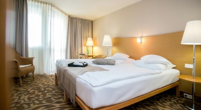 Отель Hotel Europa Fit Superior Hvz является одним из самых комфортабельных в Хевисе. После недавней реконструкции преобразились не только номера гостиницы, но и медицинский центр, который единственный в Венгрии получил международный сертификат качества. Он знаменит эксклюзивной методикой подводного вытяжения позвоночника, изобретенной венгерскими медиками.