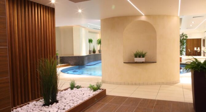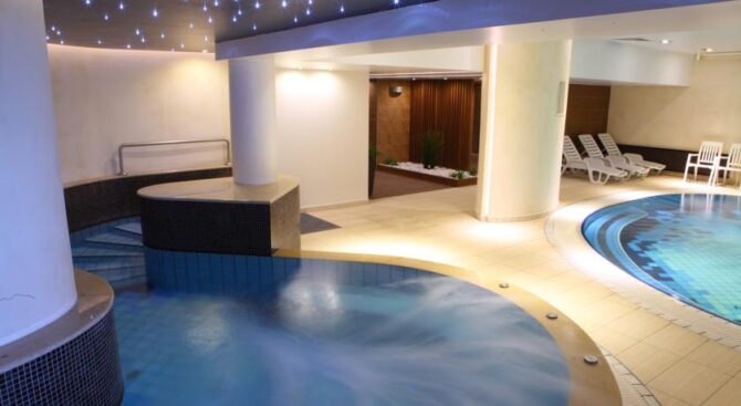 Водный комплекс гостиницы включает в себя бассейн с массажем, бассейн-джакузи и четыре сауны. В дополнение к этим процедурам отель предлагает бесплатные фрукты и безалкогольные напитки.