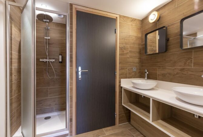В номерах и шале очень стильный и современный дизайн, удобная мебель, оборудование спальни и сантехника премиум класса в ванной комнате. В шале находятся от 1 до 3 спален, обеденная зона и кухня, где вы сможете сами приготовить еду, при желании. По предварительному запросу выдаются кроватки для детей и планируется диетическое меню в ресторане.