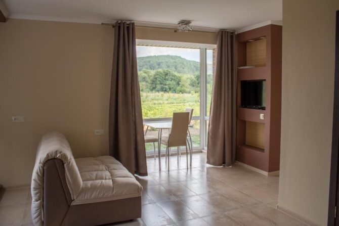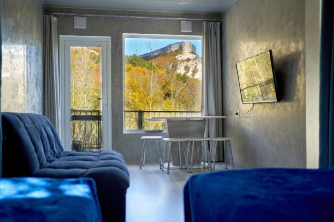 Уникальность отеля заключается в том, что именно здесь гости могут остановиться в средневековых пещерах и при этом получить все необходимые удобства для комфорта. Для более уединенного отдыха есть оборудованные домики. Каждый из них располагает собственной инфраструктурой: есть отельная парковка для машин, беседка и мангальная зона.