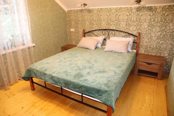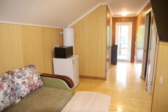 Гостевой дом работает в течение всего года и всегда радует демократичными ценами на отдых. В зависимости от личных предпочтений гости могут заселиться либо в номера эконом-класса (с общим санузлом), либо в стандартные гостевые комнаты. Для семейных пар с детьми предоставляются четырехместные домики с собственной ванной комнатой и кухней. В числе дополнительных удобств стиральная машина, гладильные принадлежности, интернет.