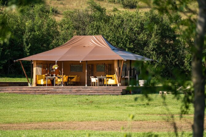 На территории глэмпинга часто проводят тематические мероприятия. Это могут быть свадьбы, дни рождения и даже фитнес-туры. В ресторане готовят блюда русской, татарской и европейкой кухни.