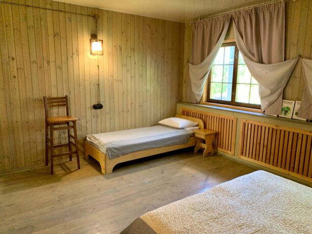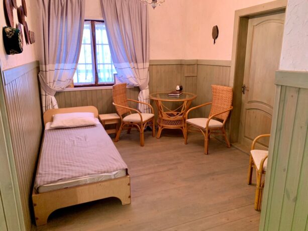 Все гостевые комнаты располагаются в единственном двухэтажном здании. Они укомплектованы всем необходимым для комфортного проживания. Есть кровать, мягкая мебель, телевизор. В каждом номере созданы условия для самостоятельной организации питания. В ванных комнатах современная сантехника и полный набор средств личной гигиены. Полотенца и постельное белье предоставляются.