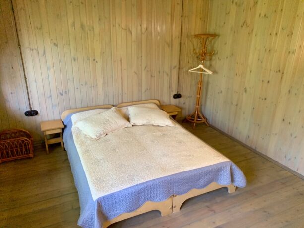 Уютный коттедж с большими панорамными окнами прекрасно подходит для незабываемого отдыха на лоне великолепной природы. Он оборудован всем необходимым, а благодаря комфортной атмосфере гости даже не заметят, что уехали далеко от дома. Дом студия занимает площадь 35 квадратных метров. Он состоит из большой просторной спальни и полностью укомплектованной кухни.