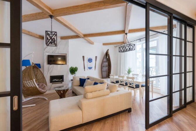 Двухуровневая квартира с собственной сауной находится рядом с драматическим театром им. Камала. Хозяева полностью переделали типовое жилье, расположенное на 2-м этаже пятиэтажного дома (лифта нет) по своему усмотрению. В результате для проживания подготовлено 2 отдельные спальни (одна на нижнем уровне, вторая на верхнем), объединенная с гостиной кухонная зона, совместный санузел с душевой кабиной и банным отсеком. Домашняя сауна поможет расслабиться после насыщенного дня, а ужин рядом со стилизованным камином поднимает настроение. В окрестностях имеется много мест для прогулок. В шаговой доступности от апартаментов находится Набережная озера Кабан, центр национальной культуры «Татарская деревня» и другие достопримечательности.
