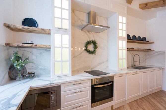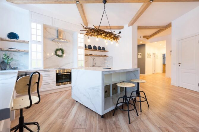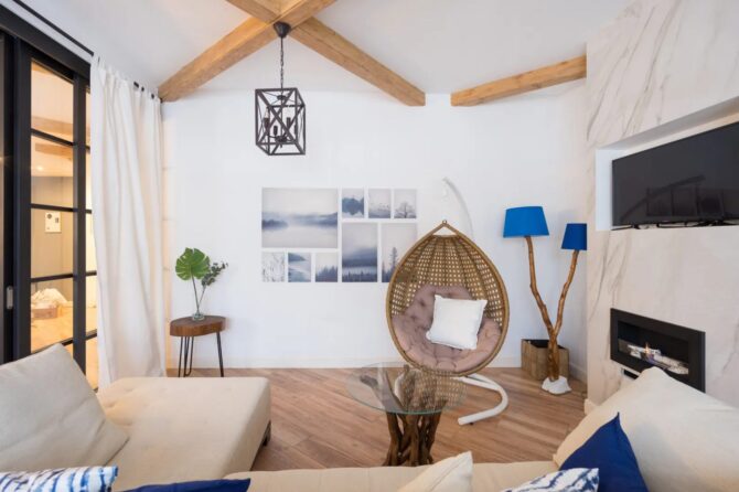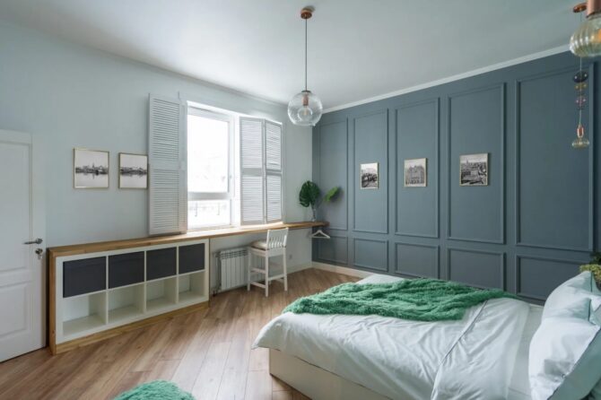 В отличие от предыдущей квартиры, оформленной в ярких красках, этот вариант, более сдержанный в тонах. Квартира с минималистским интерьером расположена в ЖК «21-й век». Здесь все свидетельствует о том, что будущее уже наступило – свежий ремонт, современная мебель и бытовая техника. Апартаменты обустроены рабочей зона с удобным компьютерным креслом. Рядом с домом (5 минут ходьбы) находятся супермаркеты «Верный», «Магнит», пиццерия, бургерная, кофейня, автобусная остановка. До центра можно доехать на общественном транспорте за полчаса. На такси или личном авто – за 10-15 минут. Во дворе есть парковка, детская площадка с качелями.