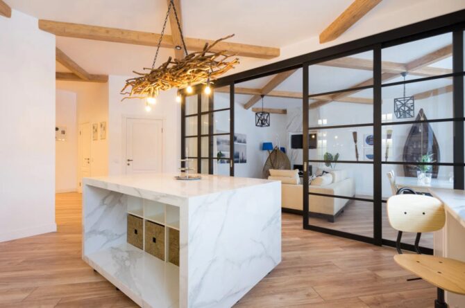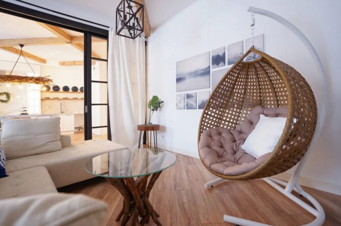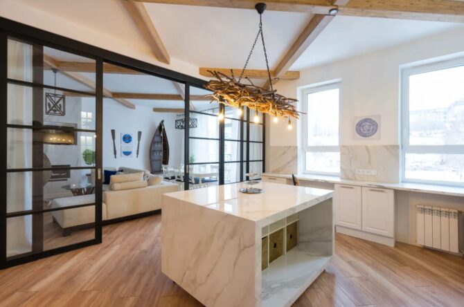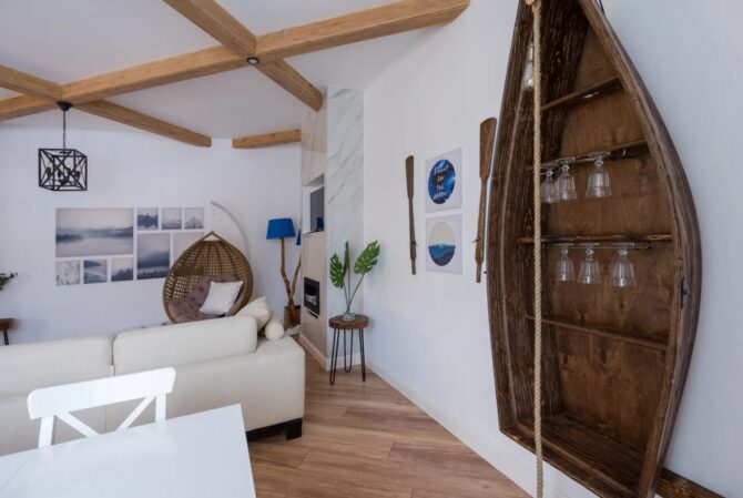 Стильные апартаменты с авторским дизайном интерьера находятся в центре Казани. Квартира расположена на 4-м этаже 9-этажного дома с лифтом. Двор огорожен, находится под круглосуточной охраной. Здесь имеется парковка и детская площадка. Окна выходят во двор, поэтому можно самостоятельно наблюдать за играющими детьми. Жилье состоит из двух комнат. В отдельной спальне установлена просторная кровать, гостиная совмещена с кухней. Для отдыха предусмотрены интернет, телевидение, книги. Для приготовления еды и хранения продуктов в квартире имеется вся необходимая техника и посуда. Постельное белье, сантехника, мебель – новые, современные, отвечающие всем требованиям гостей.