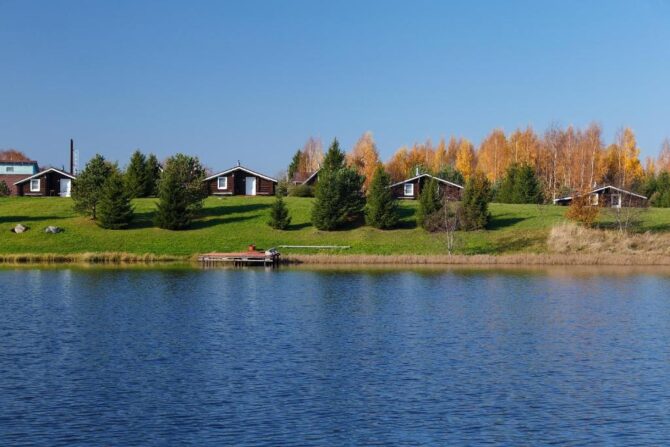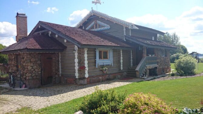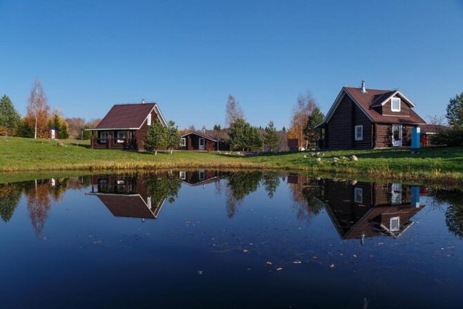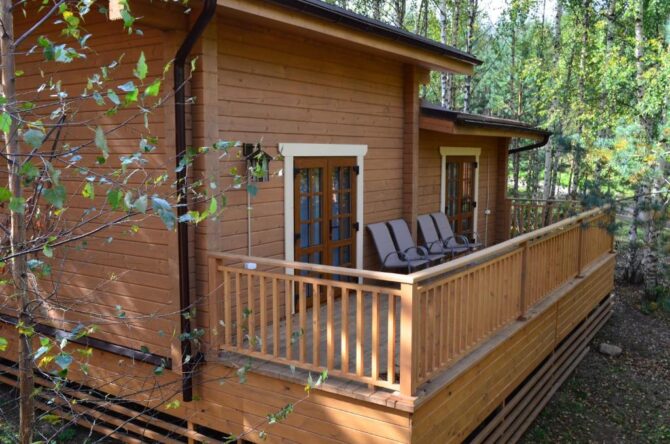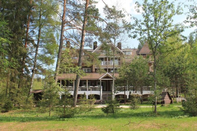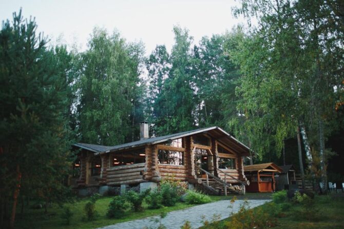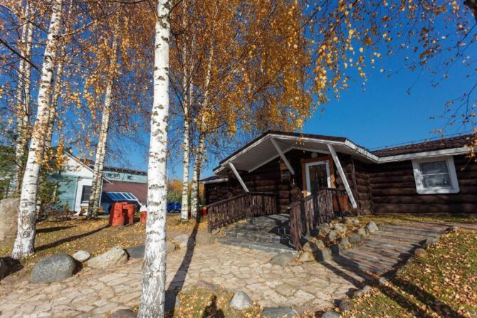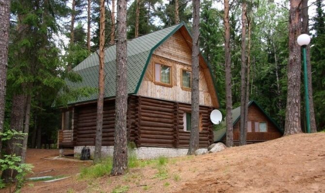 Стоимость номера – 4,8–10,5 тыс. р. за одни сутки. Главное, что привлекает туристов, это расположение базы отдыха в живописном лесу рядом с прозрачным озером. Зимой здесь есть все необходимые условия и инвентарь для катания на беговых лыжах. Завтраки сервируются в обеденных зонах в домах. Туристы отмечают высокое качество блюд. Сервис на базе отдыха также заслуживает отдельных похвал.