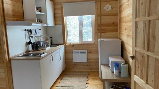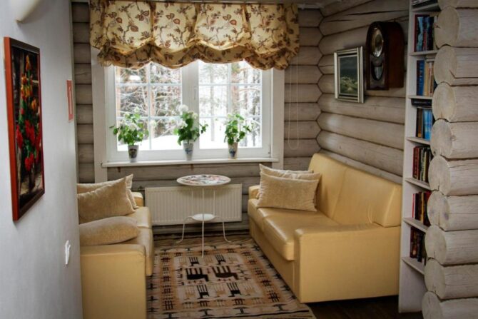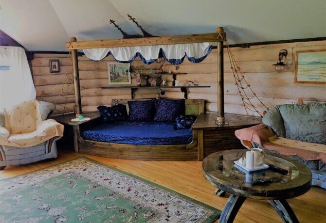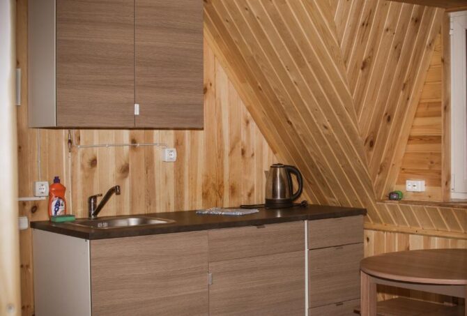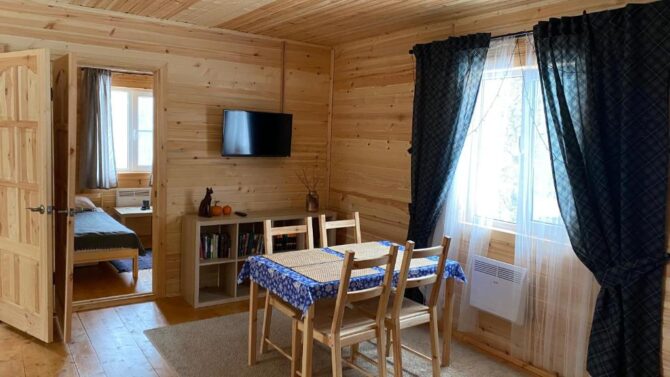 Внутри базы отдыха расположены две просторные спальни и кухня. В уютных комнатах, стены которых обиты тонкими деревянными дощечками, тепло, чисто и светло. Стоимость проживания – от 4 тыс. до 5 тыс. р. за сутки. Заботы о питании лежат на самих гостях. Отдыхающие хорошо отзываются об Ирине – приветливой хозяйке, всегда охотно помогающей решить любые проблемы и помочь советом, как организовать досуг.
