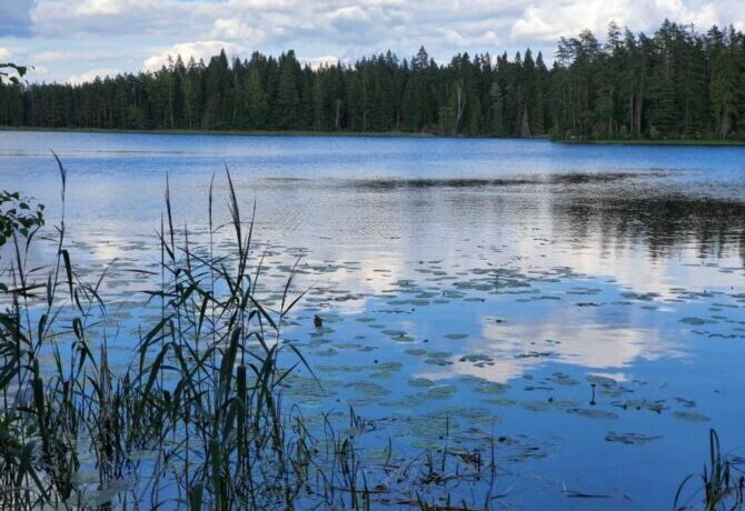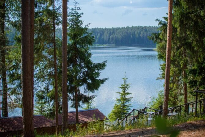 - расположение на берегу озера в лесной зоне;