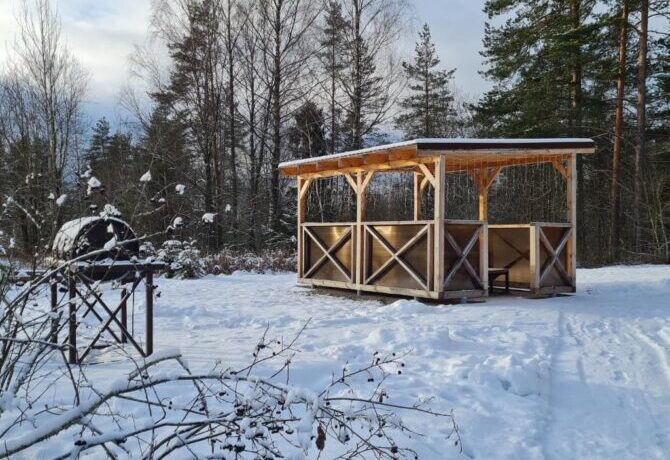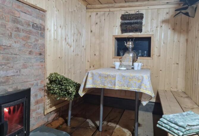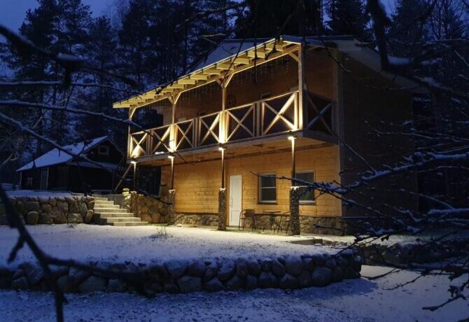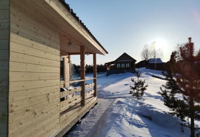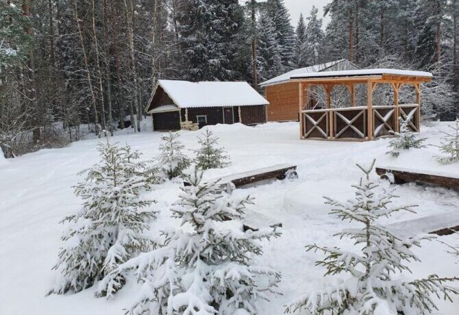 При желании отдыхающие могут попариться и помыться в русской бане, которая расположена в отдельном деревянном доме. Для любителей зимних развлечений доступен прокат лыж. Тропы проходят по живописному сосновому лесу. Пока родители катаются на лыжах, дети могут поиграть в снежки на хорошо оборудованной площадке на территории базы отдыха.
