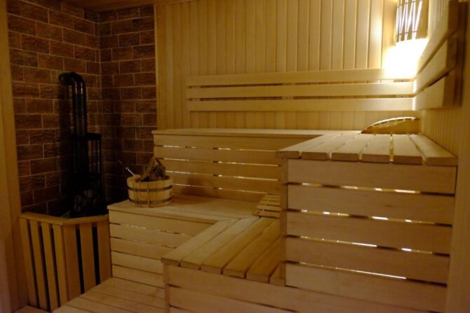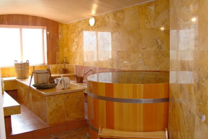 Любителям бани понравится комплекс с настоящей русской деревянной сауной, купелью, теплым мраморным отделением и, конечно же, с бассейном, финской сауной и турецкой баней.