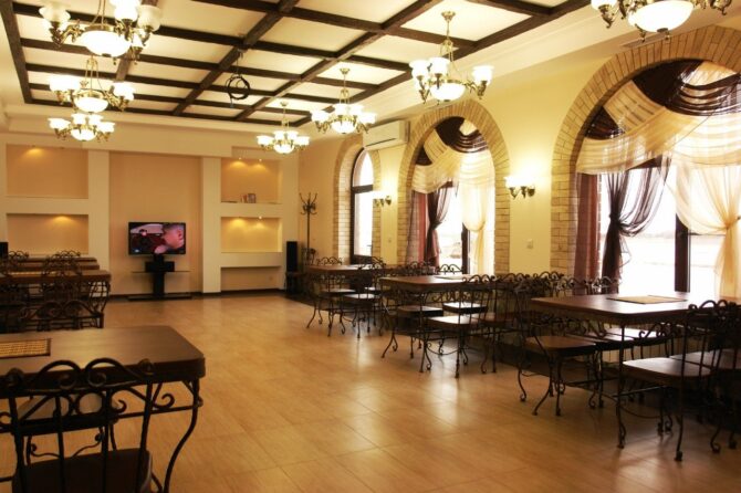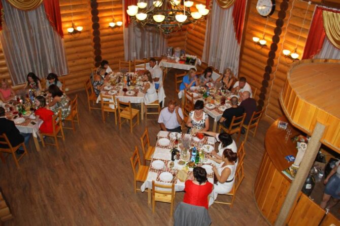 На территории туристического центра работает ресторан, где гости могут вкусно поесть и провести свободное время. Также возможна организация вечеринок и корпоративных мероприятий на Новый год, сам отель не организует праздников для проживающих. На втором этаже ресторана — зона отдыха с баром, бильярдом, настольным теннисом.
