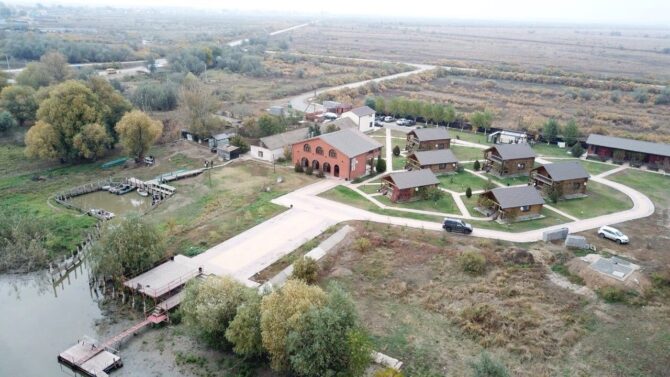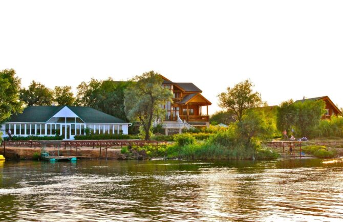 Базе отдыха принадлежит территория около 100 га в дельте Волги на главном берегу. Гости могут разместиться в коттеджах, бревенчатых домах или апартаментах трехэтажного гостиничного комплекса.