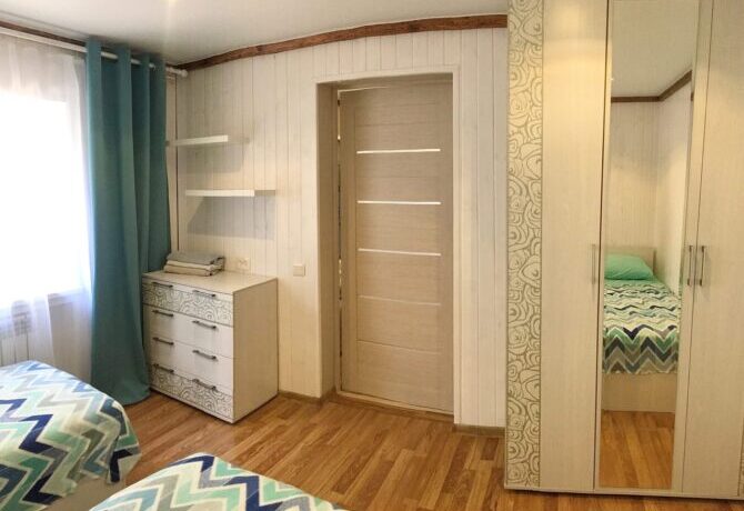 - Двухэтажный дом на 8 человек: терраса, балконы, гостиная-кухня, три спальни, две ванные комнаты .