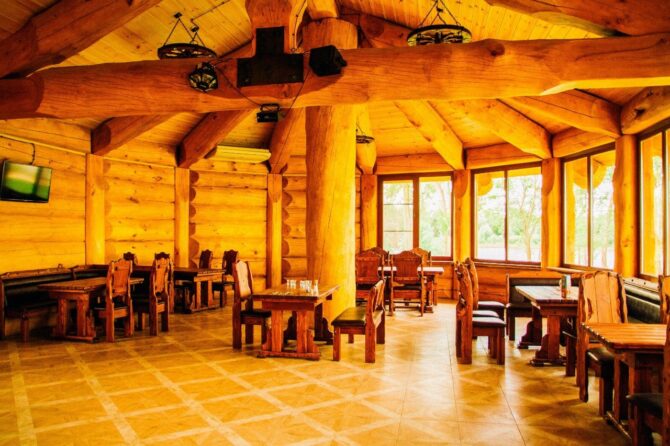 - Кафе — повара не только накормят гостей в любое время, но и приготовят трофеи, привезенные с рыбалки. А наличие фермы гарантирует свежесть блюд.