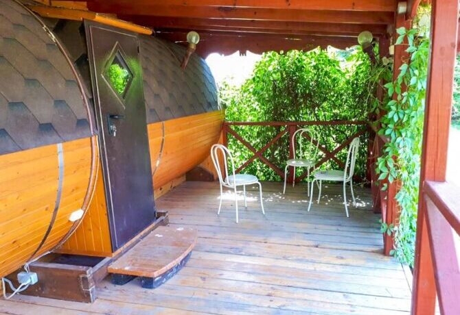 Комнаты и деревянные домики оборудованы для размещения гостей, в которых с комфортом могут разместиться 2–6 человек. Кухни корпусов оборудованы для самостоятельного приготовления завтраков, обедов и ужинов; продаются свежие продукты, произведенные на мини-ферме. На территории базы есть площадки для барбекю.