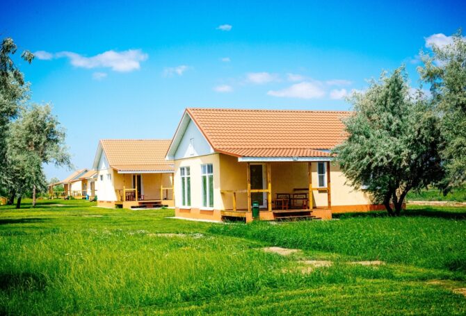 - комфорт — клиенты живут в комфортабельных коттеджах, оборудованных ванной и телевизором со спутниковыми каналами;