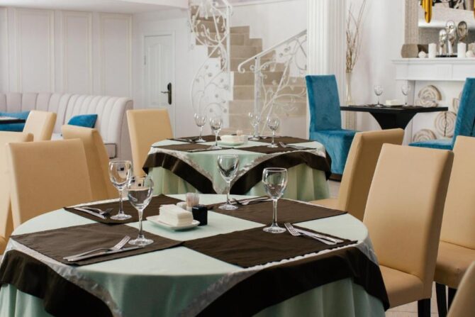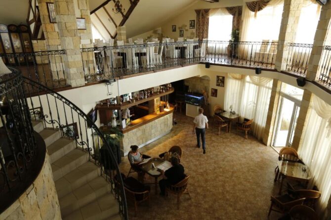 Стоимость проживания для одного гостя – 5,8–13,3 тыс. р. (полупансион), 4,4–10,4 тыс. р. (завтрак). В отеле работает современный ресторан, где подаются русские и западноевропейские блюда. Гастрономическое заведение включает в себя два зала – каминный (рассчитан на 25 гостей) и основной (вмещает до 75 человек), – а также уютный бар.