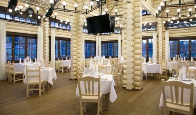 На территории эко-отеля работают 2 бара и 2 ресторана: «Лепота» (русские блюда) и «Некрасов» (международная кухня). Гости с удовольствием плавают в закрытом бассейне (глубина – 1,35 м, длина – 20 м). Зимой, в том числе в новогодние праздники, на базе отдыха доступны самые разные занятия: