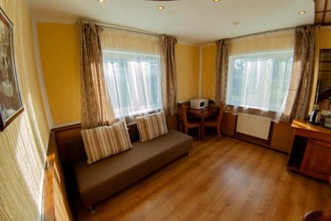 «Лепота» предлагает гостям проживание в 28 номерах, 4 гостевых домах, 8 таунхаусах и 5 деревянных срубах. Независимо от выбранного места, в распоряжении отдыхающих имеется современное оборудование, необходимая мебель и электрические приборы. Стоимость суточного проживания в одном номере для каждого гостя – 6,2–7,7 тыс. р. В таунхаусе – 21,6 тыс. р. за сутки, в гостевых домах и срубах – 15,8–26,0 тыс. р.