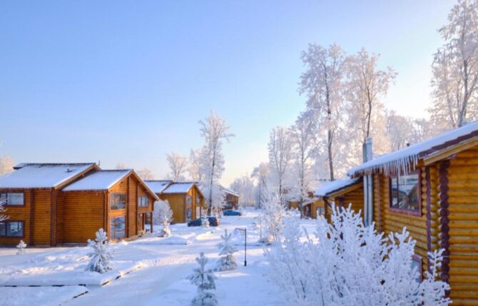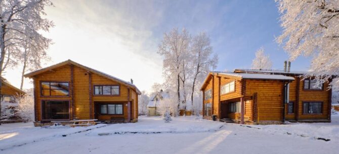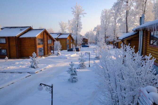 Стоимость проживания в коттеджах – 11–31 тыс. р. за сутки. Гости организуют питание самостоятельно на оборудованных кухнях. Зимой на территории гостиничного комплекса можно кататься на тюбинговой трассе или протяженной лыжне. Для желающих доступен прокат снегоходов.