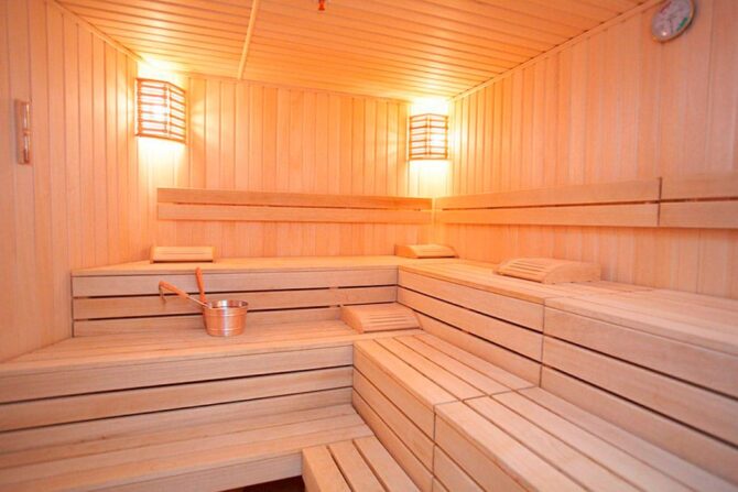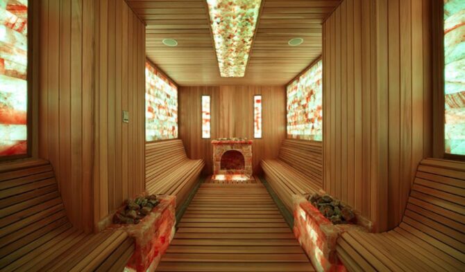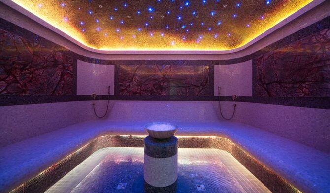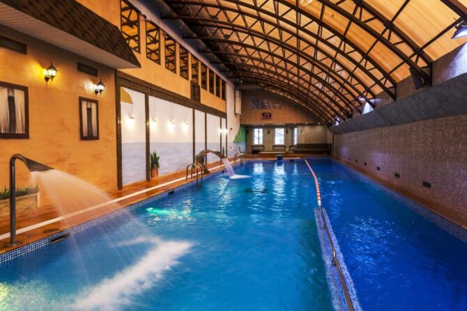 - спа-центр с массажными кабинетами, тремя банями и большим бассейном (глубина – от 0,8 до 2,15 м, ширина – 6 м, длина – 25 м).