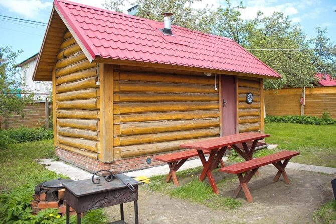 На территории за дополнительную плату можно затопить русскую баню. Беседка с освещением и плитой – бесплатно.