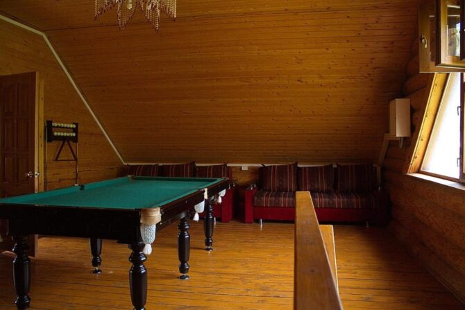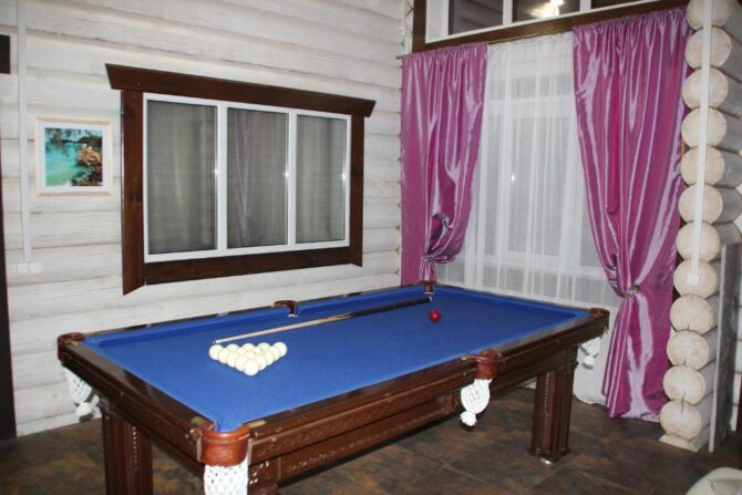 Фишка каждого коттеджа – комната отдыха, оборудованная для интересного досуга чем-то одним: настольным футболом, аэрохоккеем, бильярдом. По отзывам, коттеджи чистые и уютные, персонал предупредительный и дружелюбный, к заезду стол сервируют, а бани протапливают.