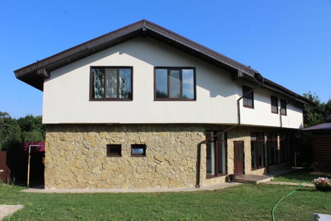 - Кирпичный дом с гостиной на 20 человек, с мансардой и всем необходимым для празднования Нового года – телевизором, караоке, аудио-системой. Туалет на улице.