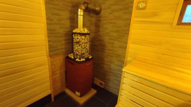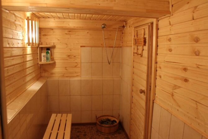 В каждом домике есть собственная сауна. По отзывам бывалых, она может быть нежаркой, до 50 градусов.