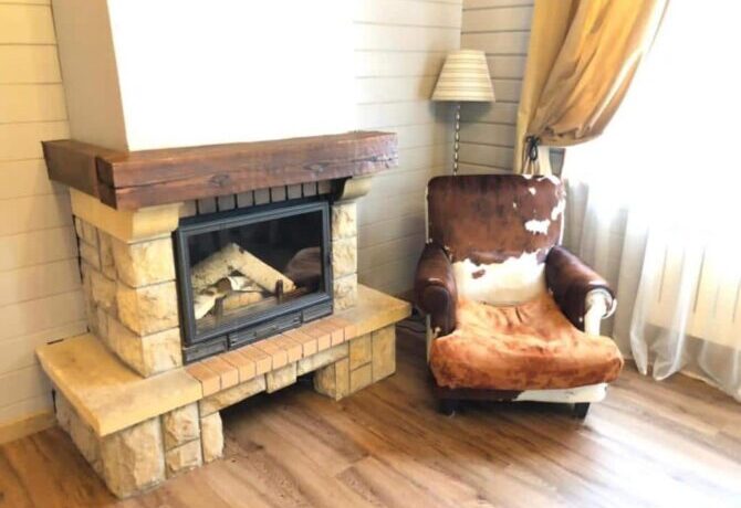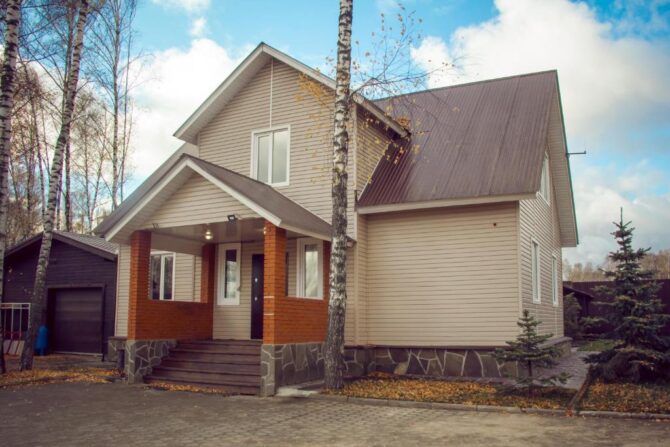 Двухэтажный кирпичный дом с теплыми полами изнутри обшит деревом: