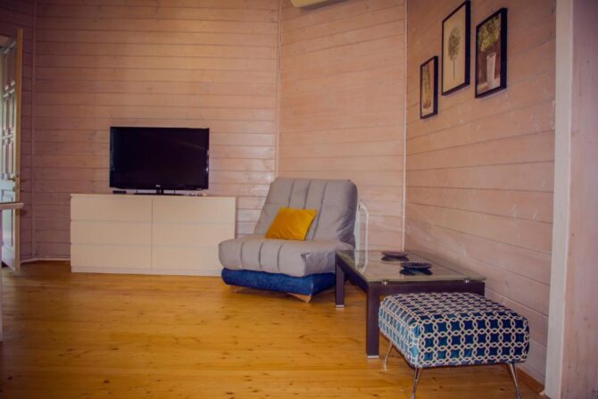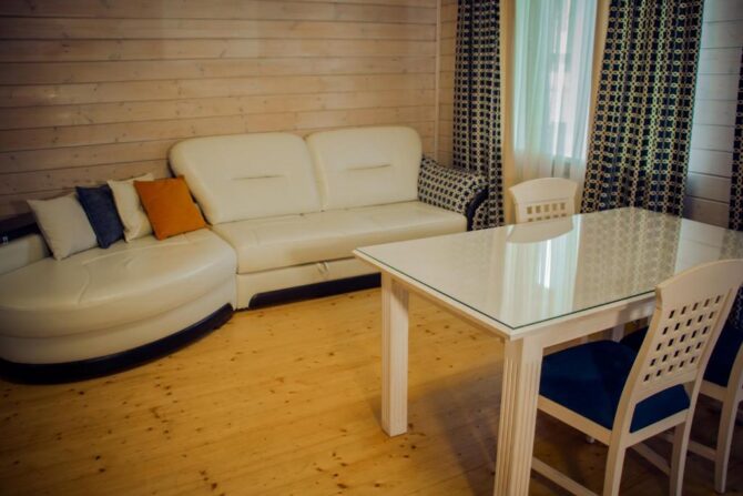 Коттеджи оборудованы всем необходимым для автономного проживания – водонагревателем, кухонной техникой, минимумом мебели, телевизором. Курить в номерах нельзя.