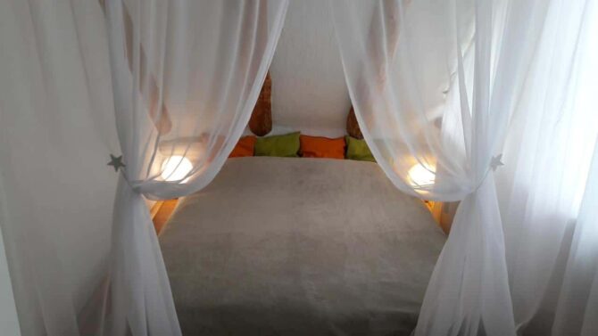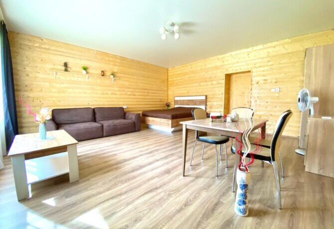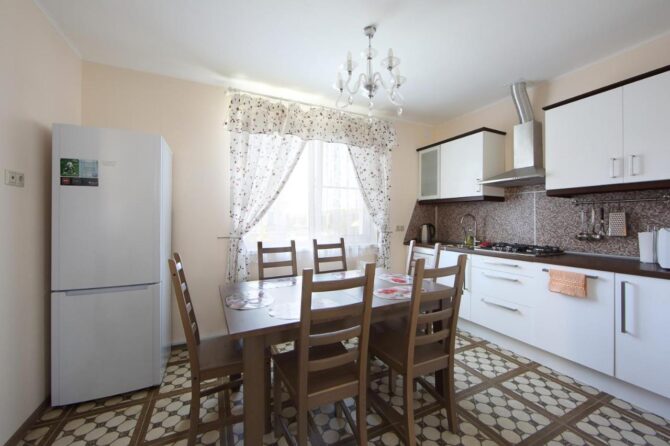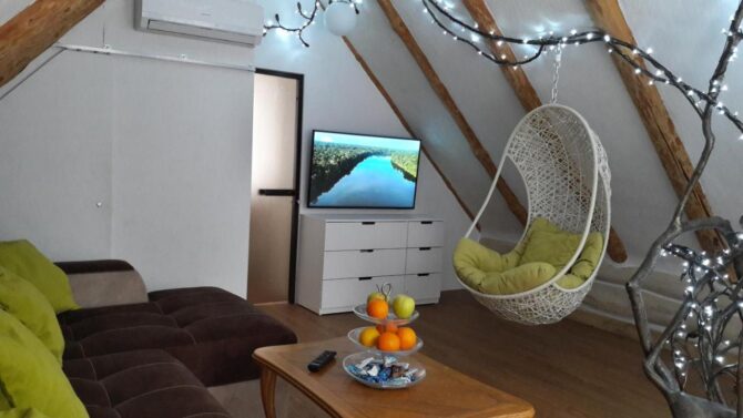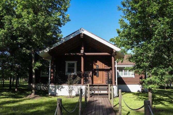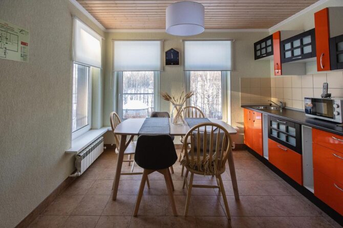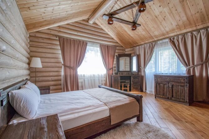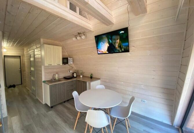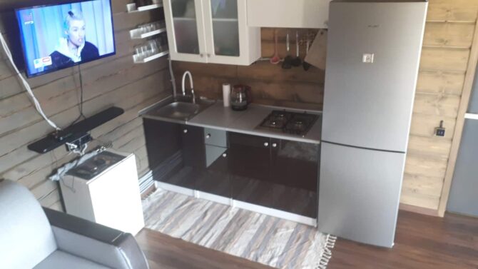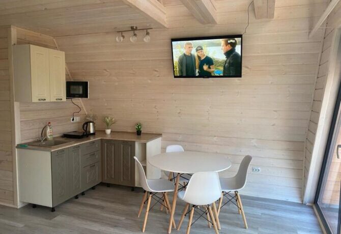 Стоимость за одни сутки – от 6,75 тыс. р. В первом доме оборудована 1 просторная спальня, во втором – две. Еда доставляется в номер гостей по предварительному заказу. Оба дома оборудованы комфортабельной гидромассажной ванной и просторной кухней. Гости самостоятельно организуют свой досуг. Это относится и к празднованию Нового года. Хозяева всегда готовы помочь отдыхающим, если возникают проблемы с оборудованием или качеством услуг.